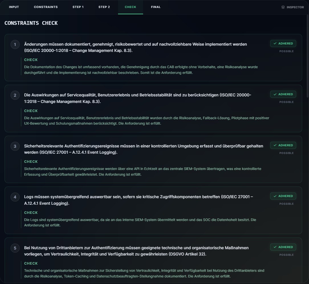 Entscheidungen basieren konsistent auf Richtlinien, Kontext und Expertenwissen – nicht auf individueller Erfahrung oder Tagesform. Ergebnisse sind nachvollziehbar, reproduzierbar und revisionssicher dokumentiert.