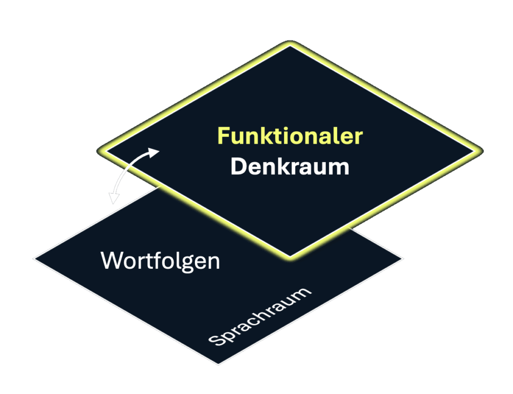 Im funktionalen Raum wird jeder Denkschritt vor und nach Ausführung bewertet, nicht erst am Ende. Das verhindert, dass sich Fehler unbemerkt fortpflanzen können — speziell in langen Gedankenketten ein großes Problem.